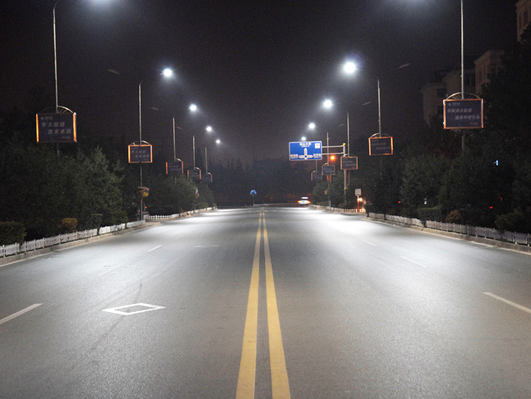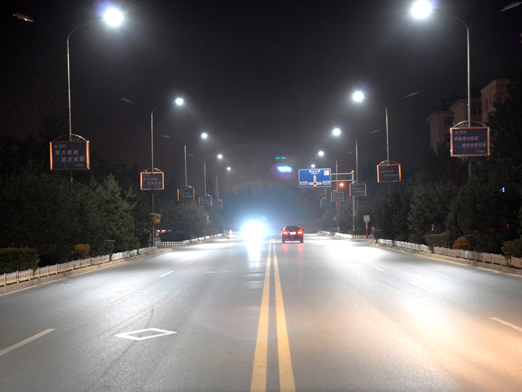 秦皇島紅旗西路照明工程案例150W氙氣燈,路寬23米。